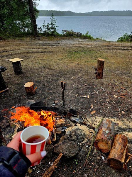 – Ланч-перекус на природе на лесном озере – карельской ламбе.